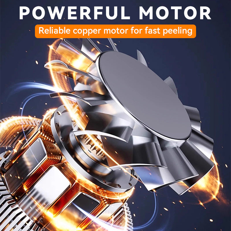 MOTORE POTENTE IN RAME – Dotato di un motore ad alte prestazioni in filo di rame, questo sbucciatore elettrico garantisce una pelatura rapida ed efficiente di frutta e verdura di vario tipo. Il motore mantiene una potenza costante, permettendoti di sbucciare anche i frutti più piccoli senza intasamenti o cali di performance. Robusto e affidabile, è un alleato che ti farà risparmiare tempo in cucina.