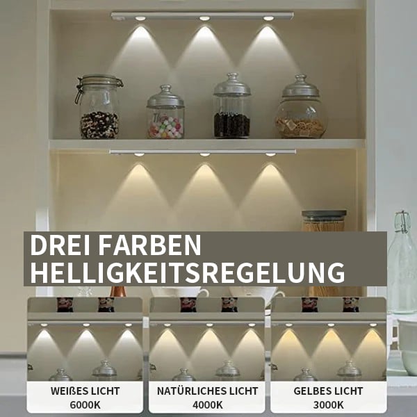 ❤️3 Farbtemperaturen und mehrstufige Helligkeit einstellbar: Jede Untertischleuchte für die Küche verfügt über drei Farbtemperaturen: 3000 K Warmweiß, 4000 K Naturweiß, 6000 K Kaltweiß. 10%/30%/50%/80%/100% 5 feste Helligkeiten, superhell, genug, um dunkle Ecken auszuleuchten.
