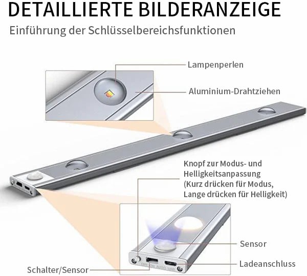 💡Bewegungssensor unter Schrankleuchten, dimmbare Schrankleuchten, kabellos, wiederaufladbar, magnetisches Licht, Küchen-Nachtlichter für Kleiderschrank, Schrank.