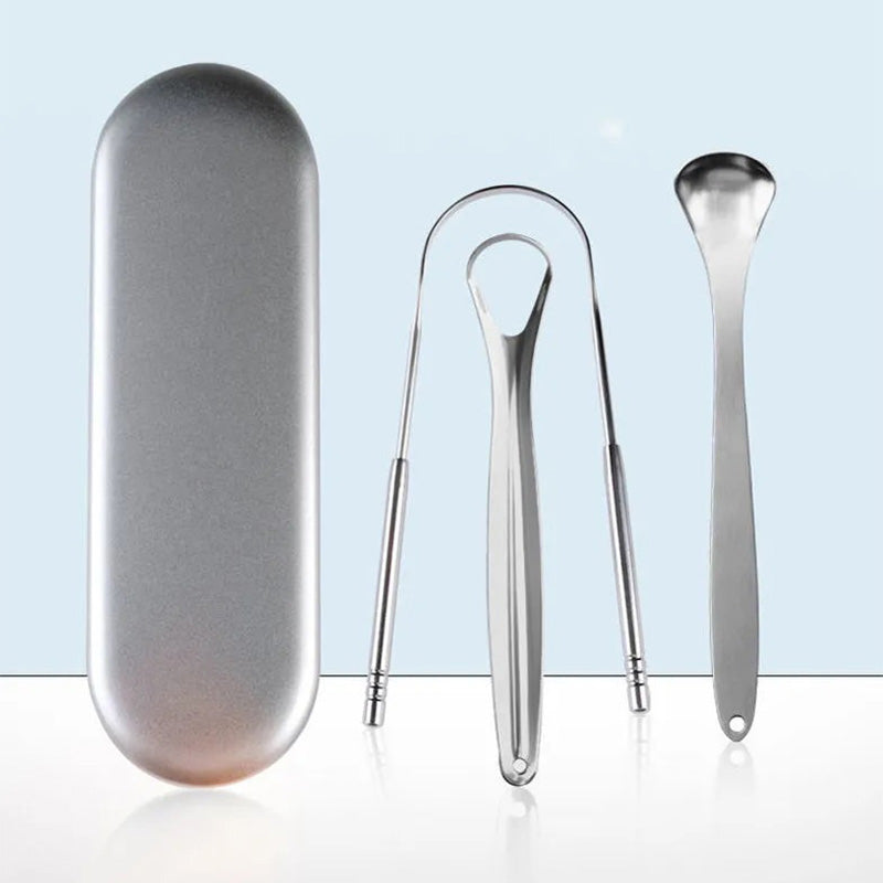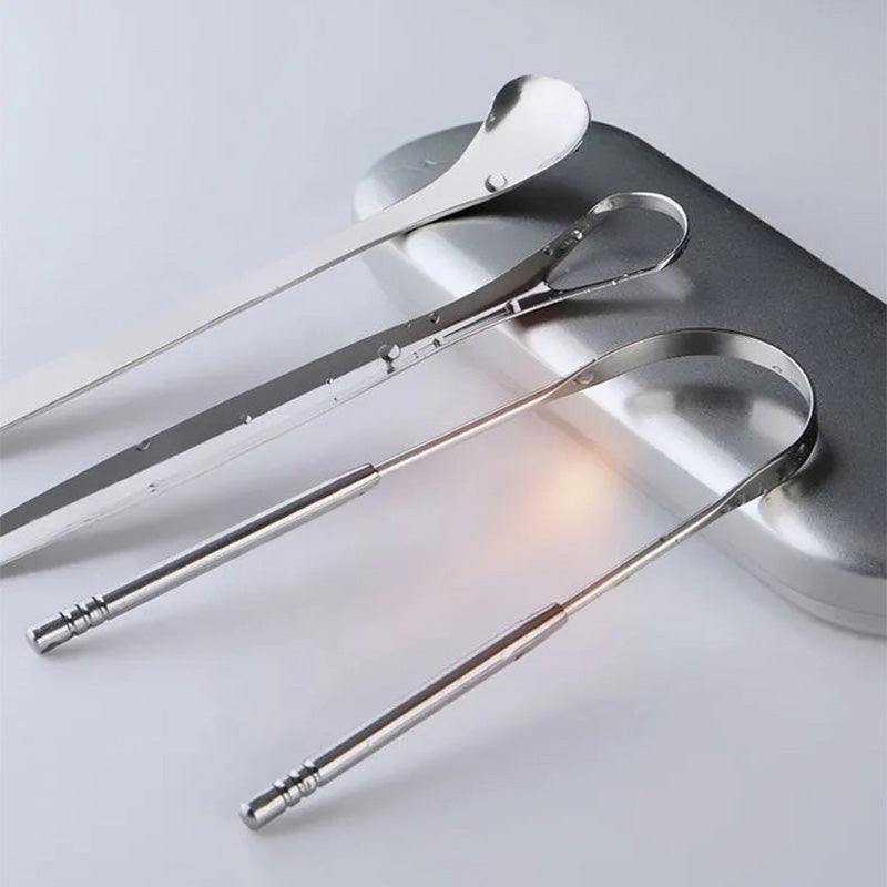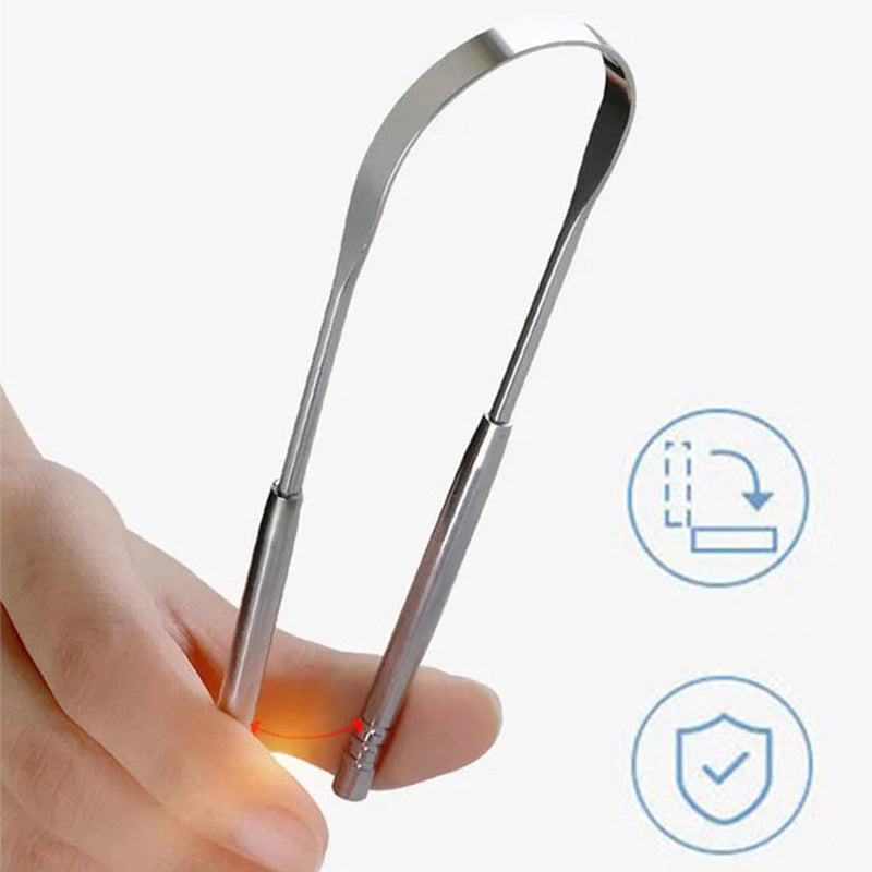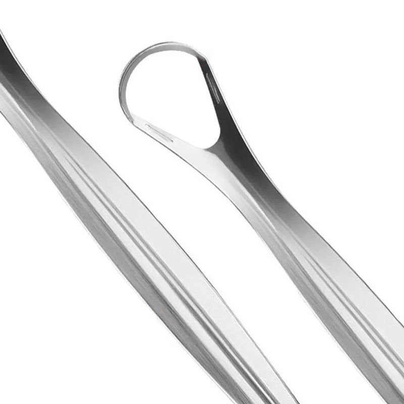 MADE OF STAINLESS STEEL: This tongue scraper is made of stainless steel, making it strong and long-lasting.